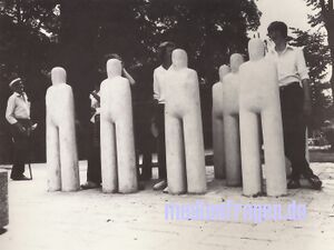 Der Anblick erinnert an die Aufstellung einer Fußballmannschaft. Die Plastik diente häufig als Kulisse für Fotos und wurde auch des öfteren Opfer von Vandalismus.